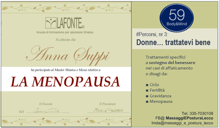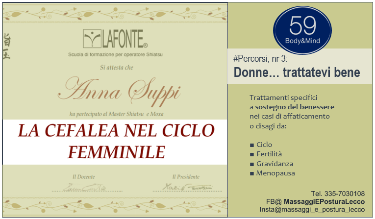Per quanto riguarda il massaggio invece, senza la pretesa di poter risolvere tutto in un battibaleno, o di disporre di chissà quale ricetta magica, sappiate che in Studio continuiamo a seguire percorsi formativi specifici su questi temi, e che chi ha la costanza di “trattarsi bene” percepisce effettivamente i risultati. Per saperne di più su questo argomento potete seguire questo link: